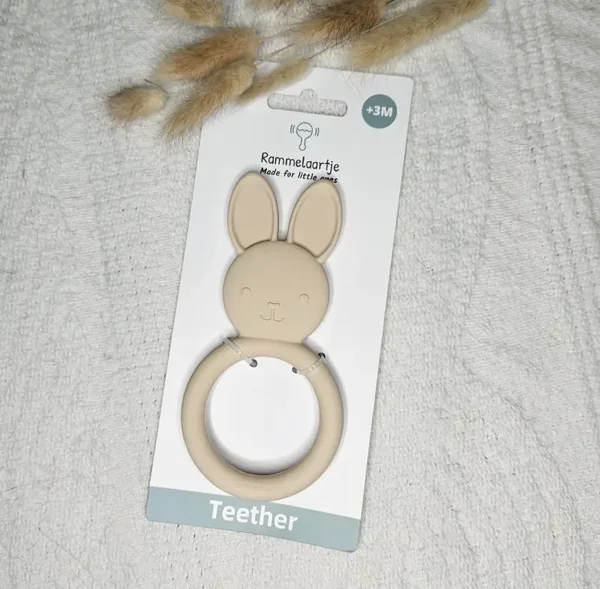 De zachte, flexibele textuur helpt pijn bij doorkomende tandjes te verlichten, terwijl het schattige konijntjesdesign met een subtiel reliëf op de achterkant zorgt voor een ontspannende tandvleesmassage. Het lichte en handzame ontwerp maakt het voor uw kleintje gemakkelijk om de bijtring zelf vast te houden.