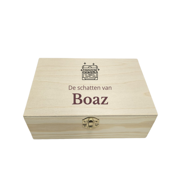 💛 Maak het uniek! Het kistje wordt gegraveerd met de tekst "De schatten van …" en een naam naar keuze.