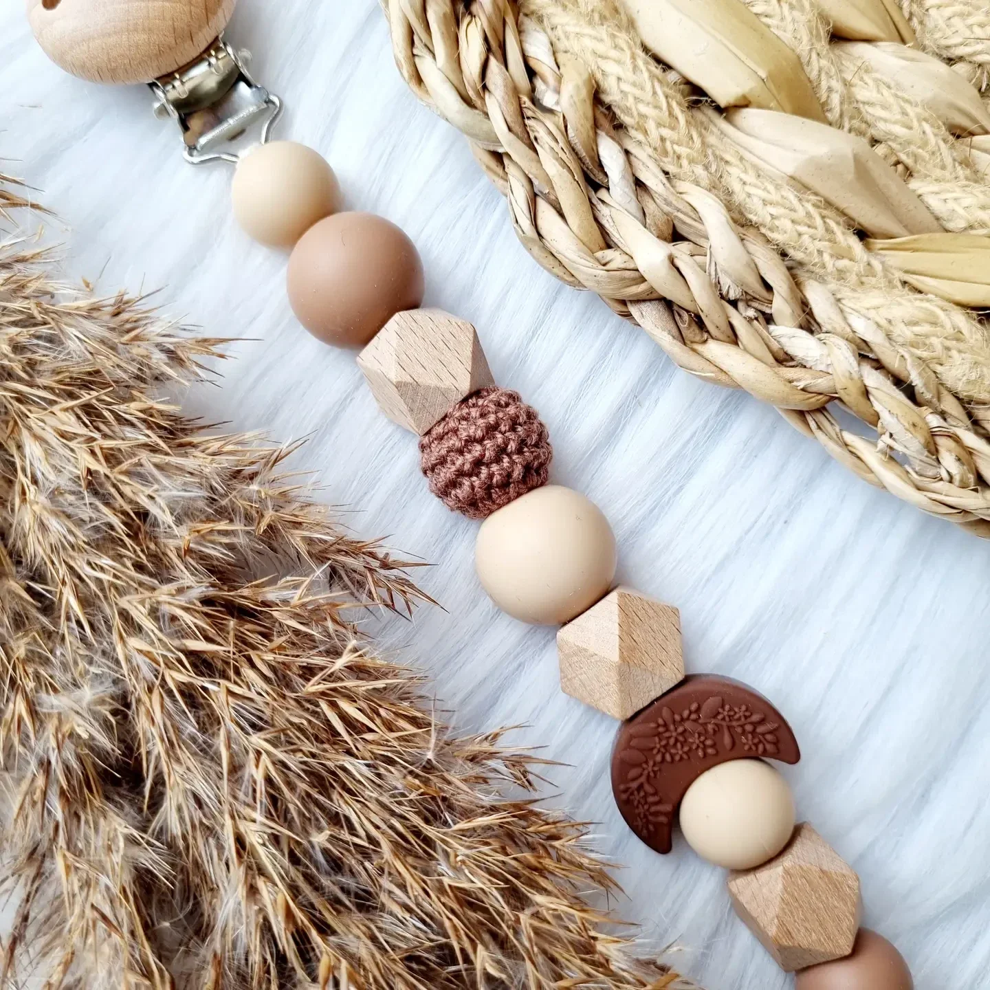 Onze speenkoorden zijn gemaakt van veilige materialen en zijn leuk om te combineren met de outfit van je kleintje. Bovendien kun je ze gratis laten graveren met naam – zo wordt het een écht persoonlijk accessoire en een uniek kraamcadeautje.