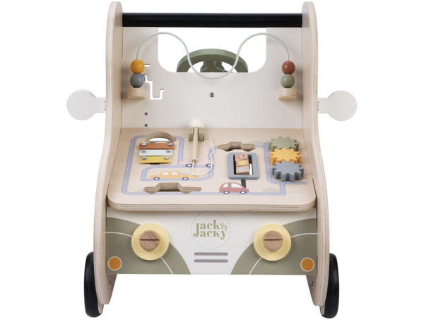 De eerste stapjes worden een feestje met de houten loopwagen van Jack & Jacky. Deze stoere auto is niet alleen een veilige steun bij het leren lopen, maar ook een echte speelvriend.