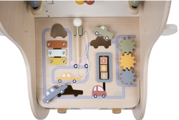 Met meer dan 10 activiteiten, van een xylofoon en kralenspiraal tot tandwielen, puzzelblokjes en zelfs een stuur, vermaakt je kindje zich eindeloos. Zo wordt niet alleen lopen geoefend, maar ook fantasie en motoriek gestimuleerd.