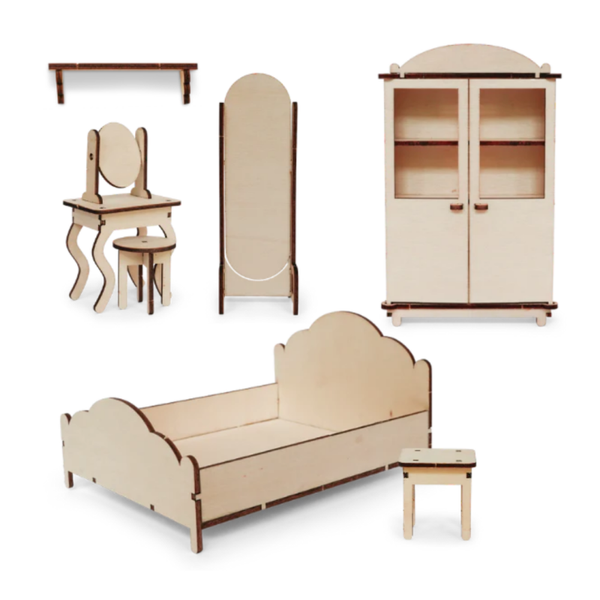 Beschikbaar in verschillende sets, zoals slaapkamer, keuken, woonkamer en badkamer.