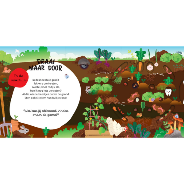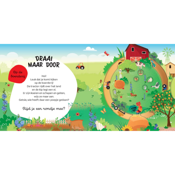 Welkom op de boerderij! Hier ontmoeten kinderen de dieren, zien ze hoe het leven op de boerderij eruitziet en leren ze spelenderwijs meer over het buitenleven. Dankzij de draaielementen worden de illustraties nóg leuker en interactiever. Een vrolijk kijk- en speelboek dat uitnodigt om keer op keer te ontdekken.