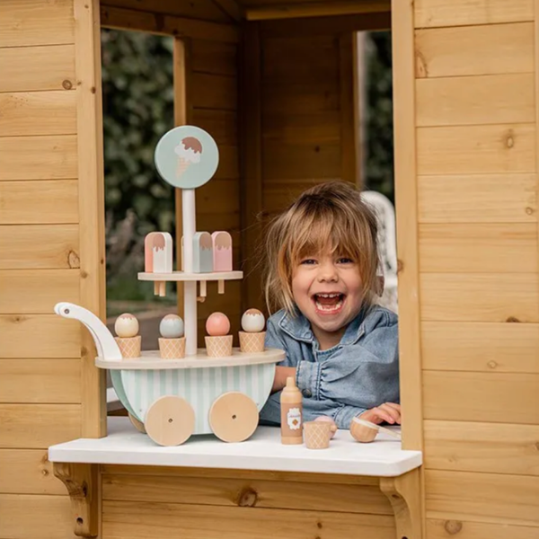 IJsjes verkopen wordt een feestje met de Ice Cream Trolley van Jabadabado! Kinderen kunnen rondrijden met hun karretje en kiezen uit verschillende hoorntjes, ijsjes en toppings.