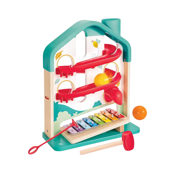 Deze ballenbaan tovert meteen een glimlach op je gezicht! De ballen rollen vrolijk door het huis en zorgen onderweg voor een klein concert op de regenboog-xylofoon. Spel, muziek en ontdekking komen hier allemaal samen.