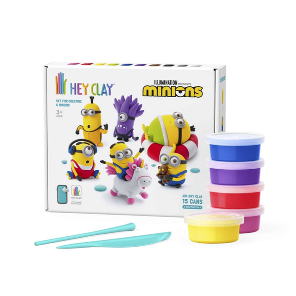 Met de HeyClay Minions set haal je het leukste boetseerplezier in huis. De zachte, kleurrijke klei is makkelijk te kneden en droogt hard op, zodat jouw Minions nog lang meegaan.
