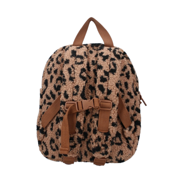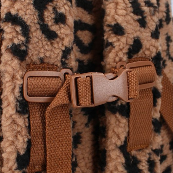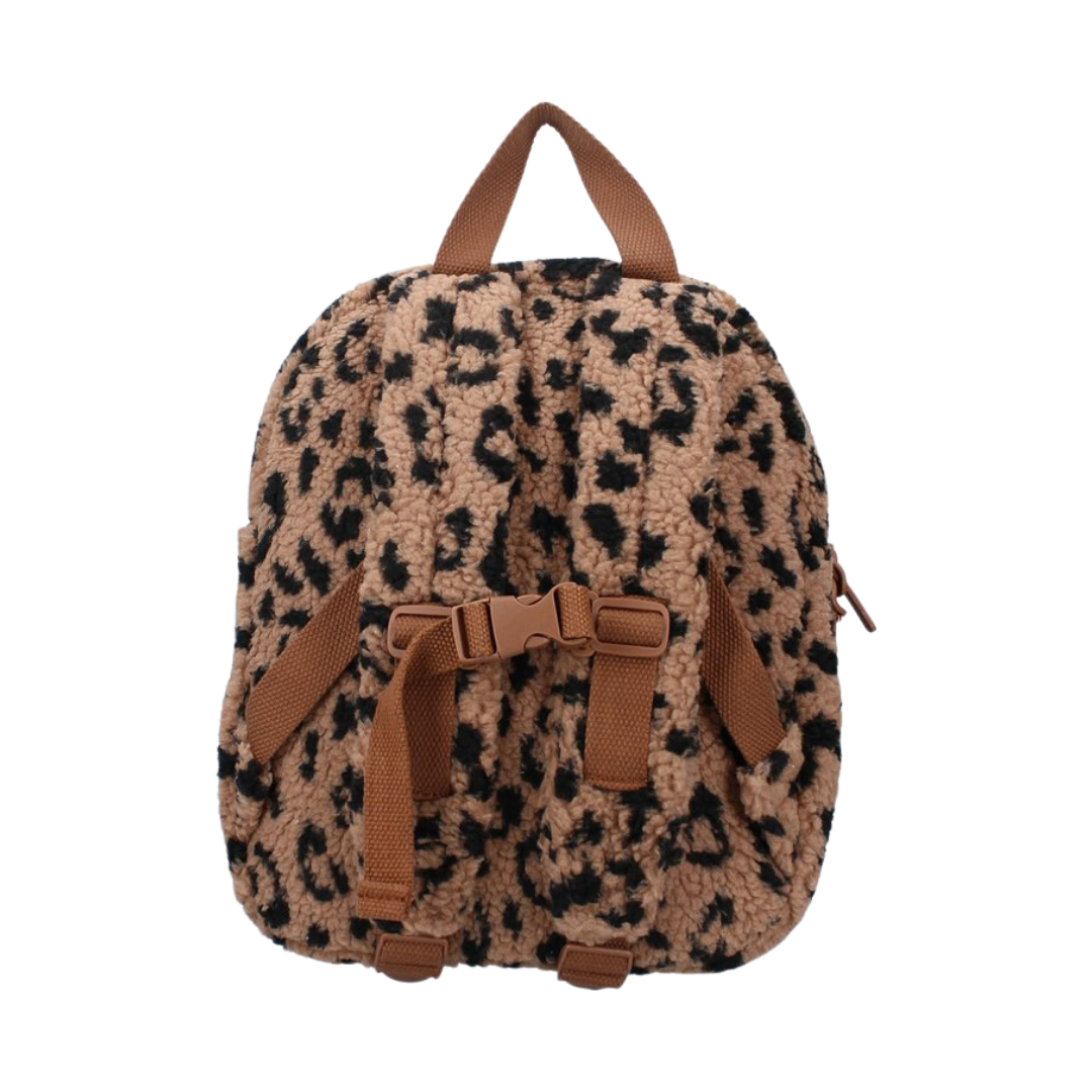 De tas is gemaakt van zachte teddystof met hippe panterprint en heeft twee schattige berenoortjes op het voorvak. De beige kleur maakt hem stoer én lief tegelijk. Perfect voor naar school, opvang of een dagje weg.